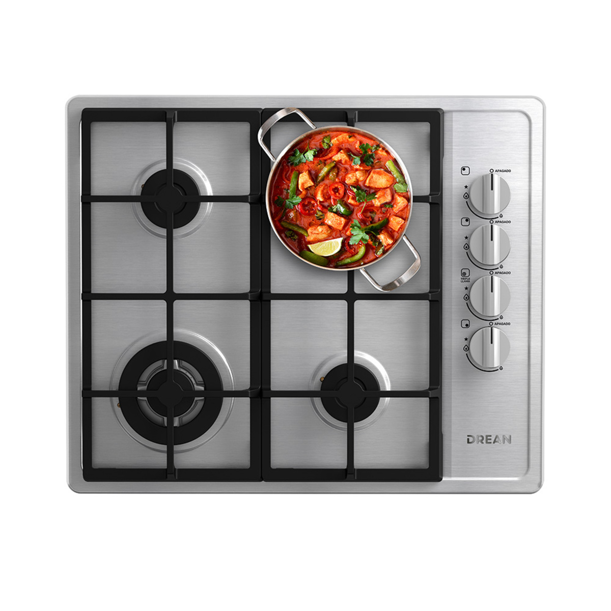 Drean AGDR60EIA1 · Anafe Multigas 60 cm · Acero Inoxidable · Rejillas de Hierro Fundido