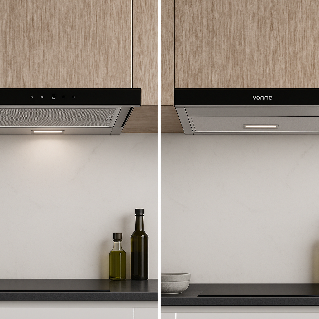 ¿Buscás potencia sin perder espacio? La Vonne CCEI-TE60 marca la diferencia: una campana telescópica extraíble de 60 cm que se despliega cuando cocinás y se oculta cuando no. Su panel digital, el diseño en acero inoxidable y el funcionamiento silencioso elevan tu cocina a un nivel profesional y elegante.