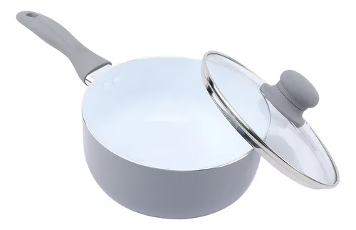 Batería de cocina de 3 piezas con revestimiento cerámico antiadherente. Diseño Chic en color gris, práctico y elegante para tu día a día.
