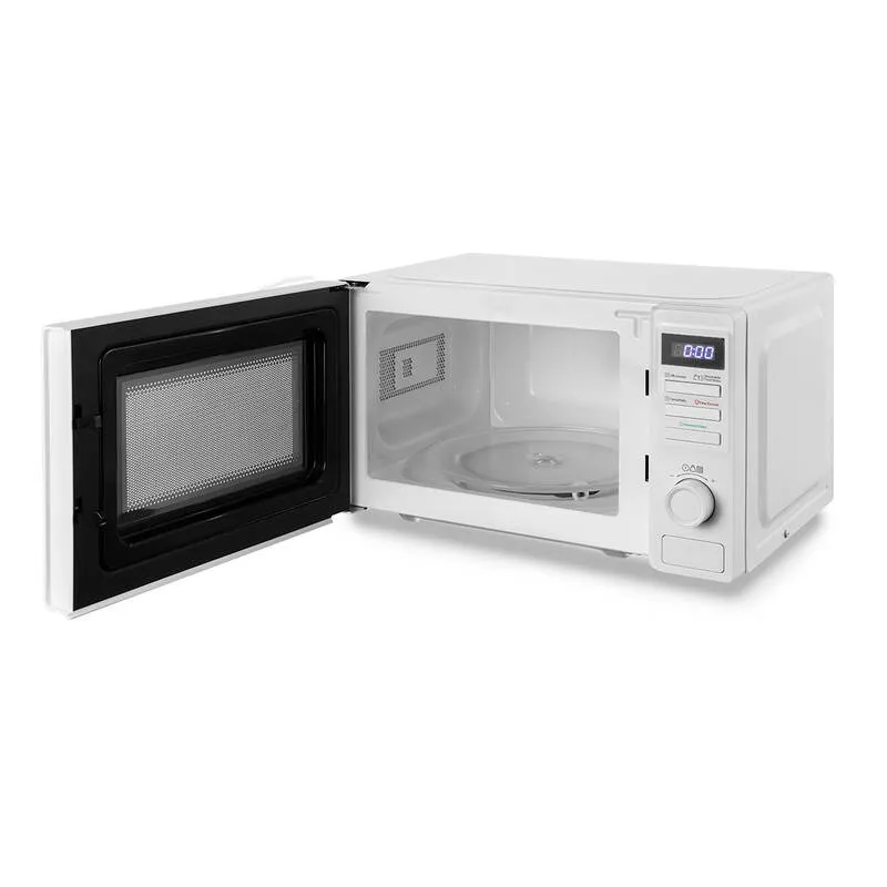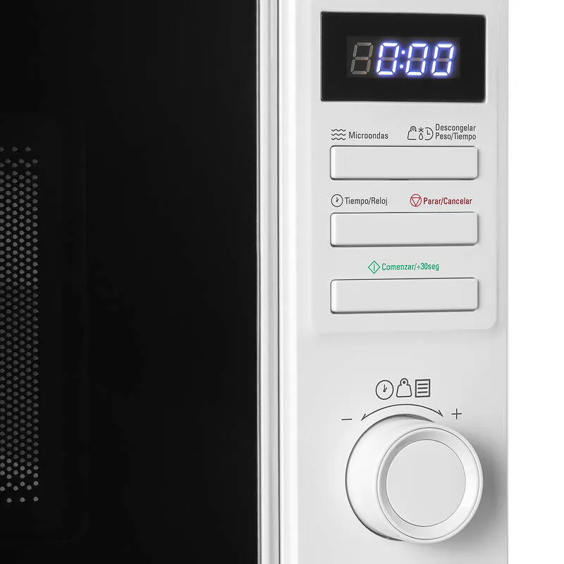 Microondas digital de 20 L. Panel intuitivo, diseño moderno en blanco y funciones prácticas para todos los días.