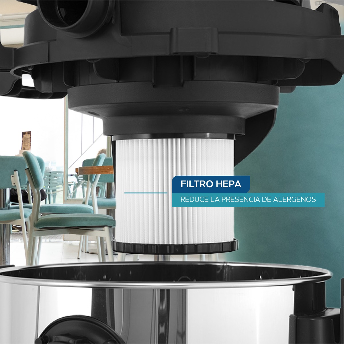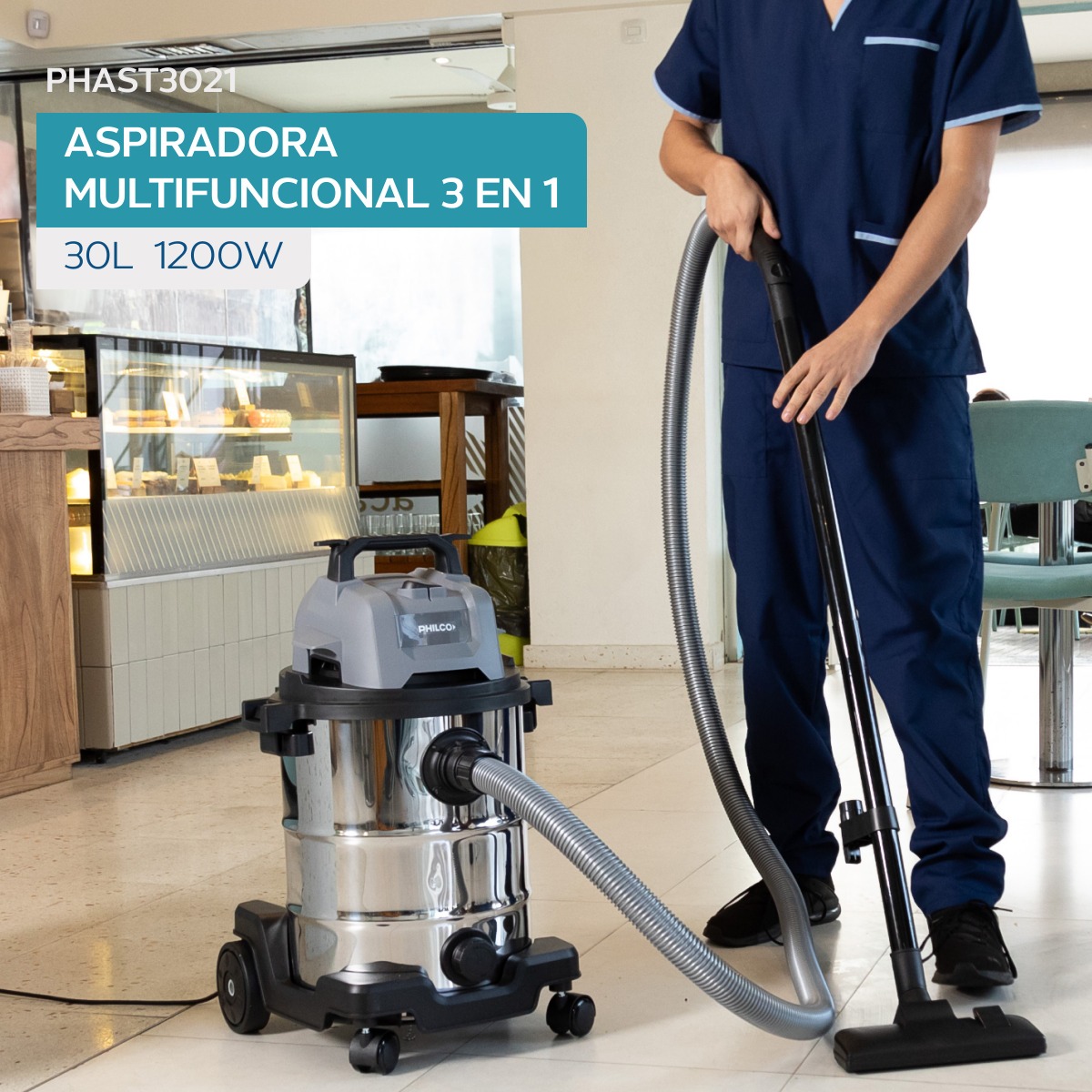 Transformá la experiencia de limpieza con la aspiradora multifuncional 3 en 1 de 30 litros y 1200W. Ideal para oficinas, comercios, gimnasios, peluquerías, hoteles, talleres, locales gastronómicos, escuelas y centros de salud, esta aspiradora garantiza espacios seguros, saludables y agradables para empleados y clientes.