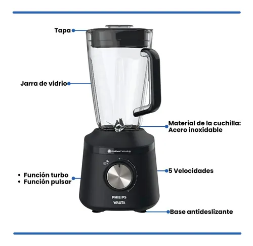 | Incluye | Base con motor, jarra de vidrio 2 L con tapa y vaso medidor, conjunto de cuchillas, manual |