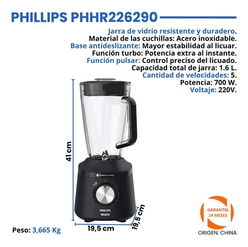 Philips HR-2262/90 · Licuadora 5 velocidades · 2 L · Jarra de vidrio · 700 W