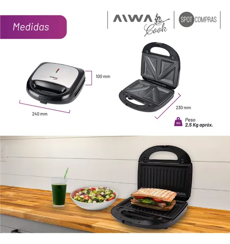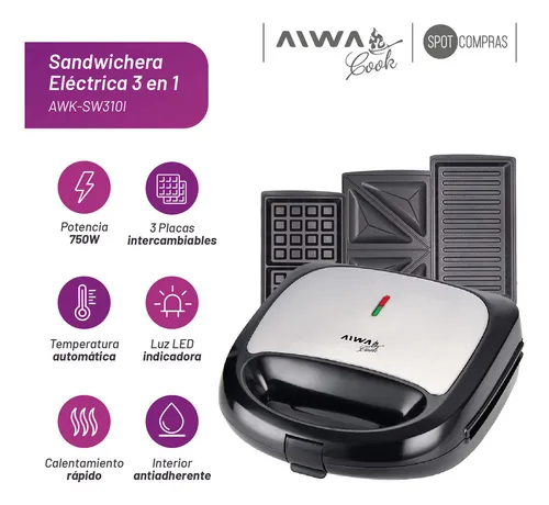 Aiwa awk-sw310 i sandwichera 3 en 1 700w.