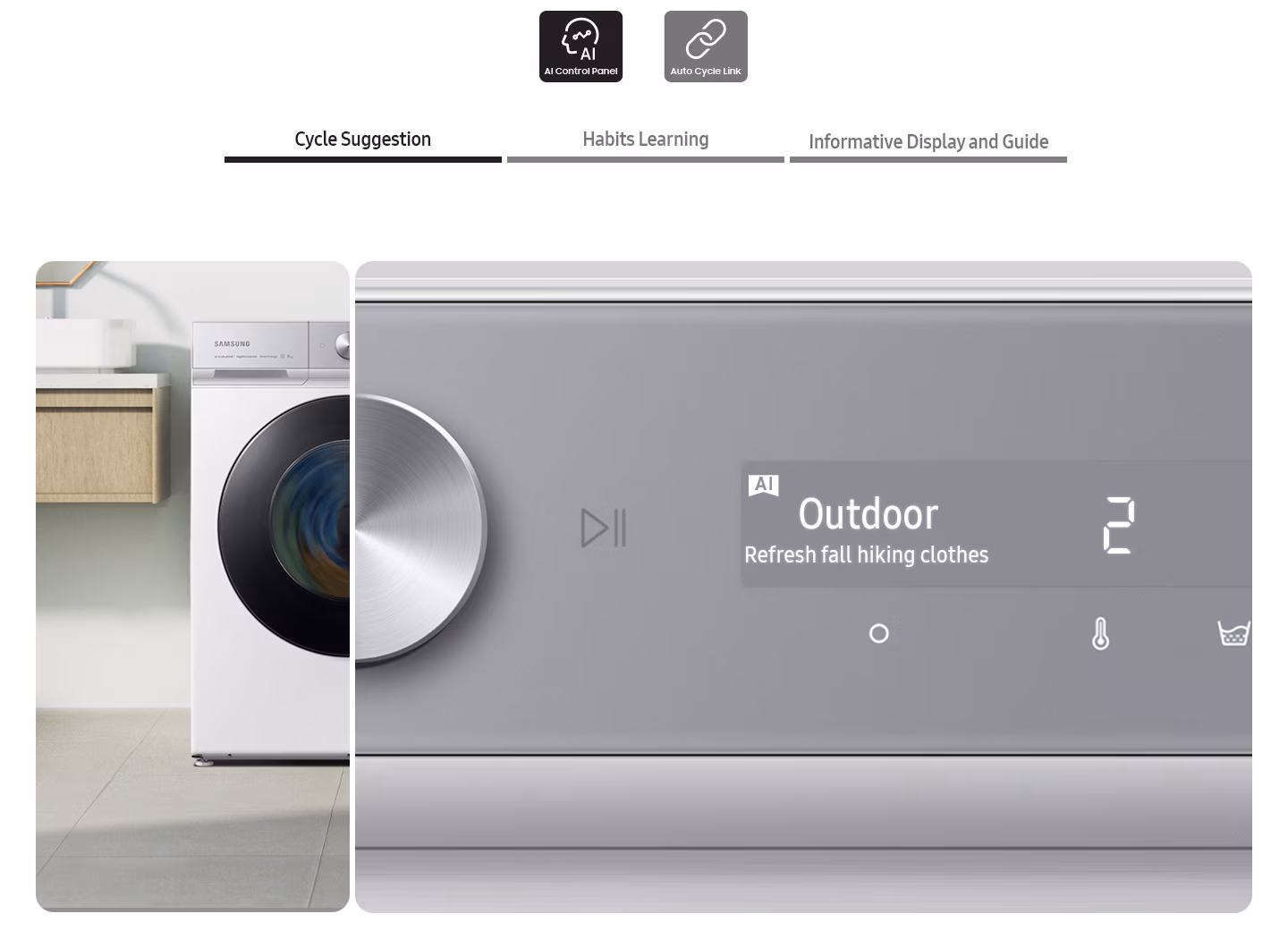 - 🧼 AI Wash, detecta tejidos y suciedad para usar el detergente justo.