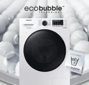 La tecnología Eco Bubble™ ofrece un lavado poderoso, incluso a bajas temperaturas*. El detergente es convertido en burbujas, que penetran más rápidamente en las telas y remueven las manchas fácilmente, mientras protegen las telas y ahorran energía.