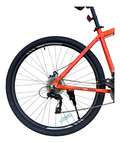 Bicis que se quedan cortas = frenadas largas y menos control. Solución: rodado 29” estable, freno a disco que responde y 21v para cualquier pendiente.