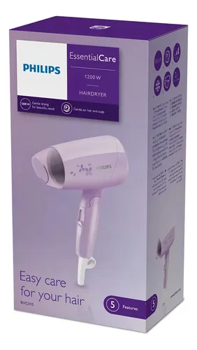PHILIPS BHC-010/70 · SECADOR DE CABELLO EASY CARE · 1200W · PLEGABLE · COLOR LILA